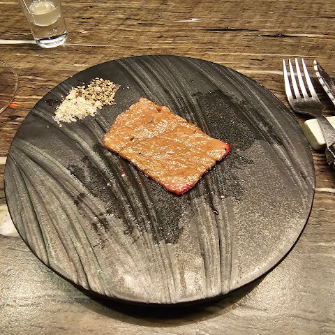 레스토랑에 대한 이야기를 많이 들은 후 저녁 식사는 정말 맛있었습니다. 처음 방문한 사람으로서는 캐주얼 다이닝 메뉴를 선택했습니다. 음식 양이 많으니 배가 많이 고픈 상태로 오시길 권합니다. 5코스 메뉴는 소고기 6조각이 들어간 플래터가 포함되어 있어서 오해의 소지가 있습니다. 고기를 구워주시는 서빙 직원분이 고기에 가장 잘 어울리는 양념을 추천해 주셨습니다. 다른 코스 중에서도 소고기 타르타르와 시그니처 포가 특히 마음에 들었습니다.