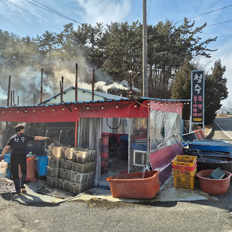 가족과함께 가기좋은곳. 사람정말많음. 가격대비 정말 많이줌. 신선하고 해감도 잘되어있어요. 장작불로 찌듯이 구워져서 촉촉하고 까먹는재미도 있어요. 주말에가면 기다리며 밖에서 파전과 어묵도 먹을수있어요