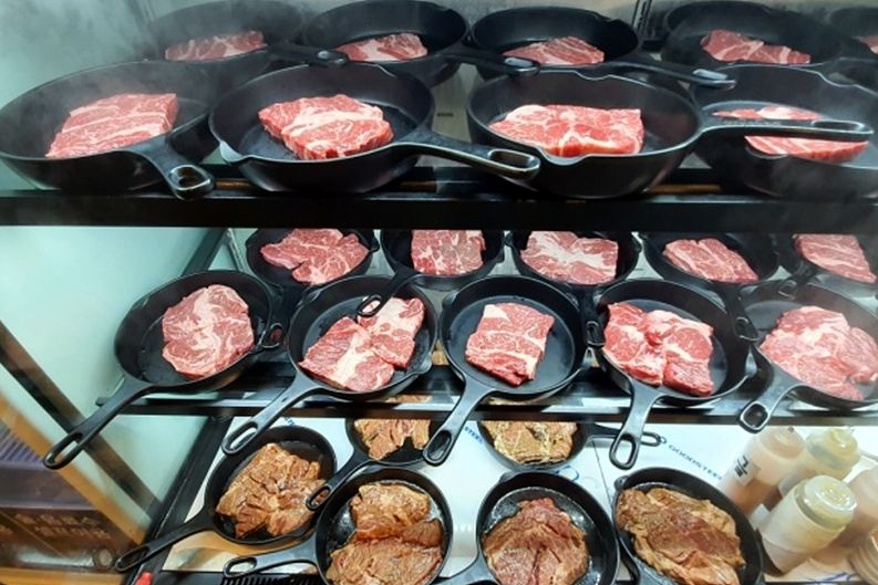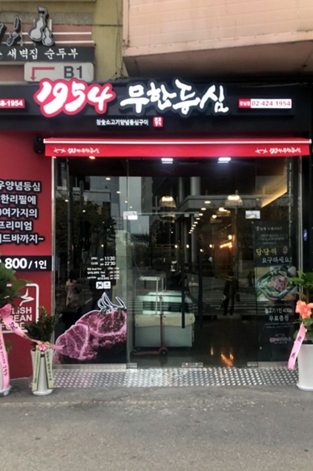 1954무한등심 잠실점은 소고기 무한리필 음식점으로 방송에도 여러 번 소개된 곳이다. 음식점 이용 시간은 100분이며, 평일과 주말, 나이대별로 이용 금액이 다르다. 40여 가지의 프리미엄 샐러드 바가 있으며, 고기는 검은 프라이팬 그릇에 담겨 있어 원하는 만큼 가져다 먹으면 된다. 음식을 남기지 않고 다 먹으면 소정의 금액에 해당하는 고기를 무료(초등학생, 36개월 미만 제외)로 제공한다.