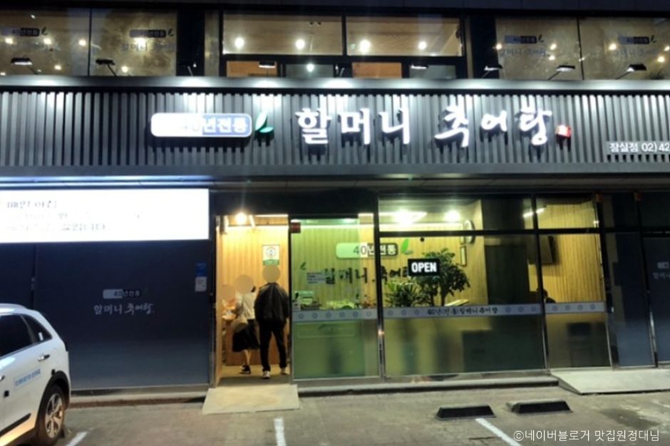 할머니추어탕 잠실점은 9호선 삼전역 1번 출구 인근에 있다. 40년 전통 식당으로, 최근에 모던하고 깔끔하게 리모델링해 가게를 옮겼다. 매장에 들어서면 카운터가 보이고 2층으로 올라가면 널찍한 매장이 있다. 주차는 대리 주차 서비스(유료)를 받을 수 있다. 대표 메뉴는 추어탕 돌솥 밥으로 기본 반찬 섞박지, 김치, 콩나물무침, 어리굴젓이 제공되고 돌솥에 밥이 나와 누룽지 밥과 숭늉을 즐길 수 있다. 추어탕은 부추가 고명으로 들어가 있고, 개인 취향 따라 들깻가루나 청양고추를 넣어 먹으면 된다. 그 외 메뉴로는 통추어튀김과 물만두도 있다. 모든 메뉴는 포장할 수 있다. 식당 인근에 석촌호수와 대형 테마파크 놀이동산이 있어 연계 관광을 할 수 있다.