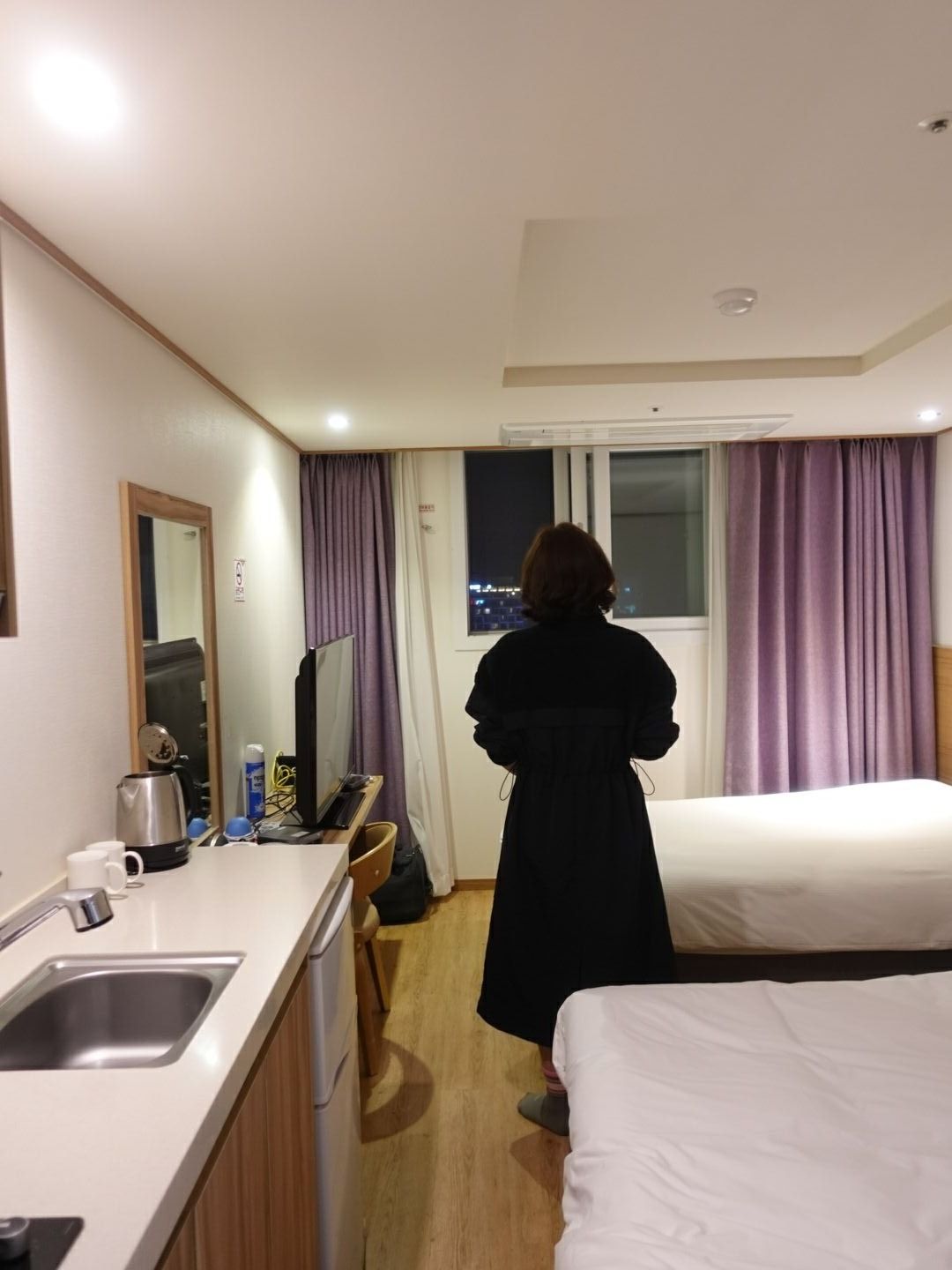 침대 두개가 있는 방에 4명 식구가 4박 했는데 작은 냉장고와 씽크대, 인덕션이 있었지만 수저나 그릇은 없습니다.