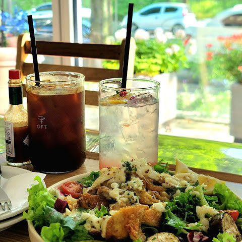 창원 가로수길 끝자락에 있는 오프트 에스프레소바는 1층에 있다. 심플하고 넓은 공간으로 편하게 얘기할 수 있고 테라스도 있어 인기가 좋다. 오프트 건물 아래에는 함께 운영하는 브런치 클럽도 있어 식사 후 카페 이용이 가능하고 카페 공간에서 식사도 할 수 있다. 카페 테이블이 그리 크지 않아 편하게 음식을 즐기고 싶다면 지하 1층 브런치 클럽에서 식사 후 1층 카페를 이용하는 걸 추천한다. 에스프레소바로 운영하지만, 추가요금을 내면 디카페인으로 메뉴 변경이 가능하여 커피를 마시지 못하는 사람도 방문할 수 있다. 커피음료뿐 아니라 초코라테, 자몽티, 레몬에이드, 밀크티 등이 있어 메뉴 선택의 폭이 넓다. 근처에 가볍게 걷기 좋은 산책로로 반송공원과 용지호수공원이 있어 데이트 코스로 함께 오기 좋은 곳이다.