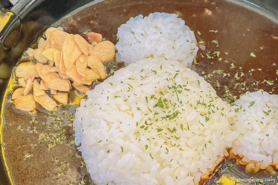 충짱카레의 대표메뉴는 매콤 달콤한 일본식 수제카레이며, 카레와 밥이 함께 제공된다. 면으로 먹고 싶다면 충짱 카레 우동을 주문하면 된다. 이외에도 치킨가라아게, 소시지, 새우튀김 등이 함께 나오는 카레메뉴도 있으며, 각종 튀김이 함께 나오는 스페셜 메뉴도 있다.