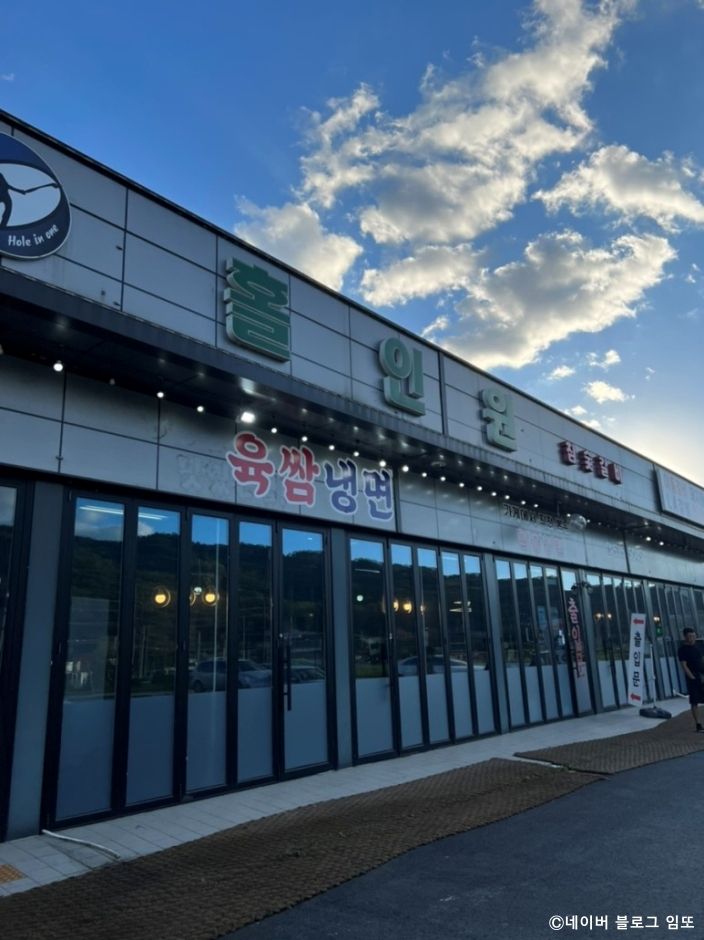홀인원 참숯갈비는 포천시 군내면에 있는 숯불고기구이 전문점이다. 주변에 포천힐스CC, 포레스트힐 컨트리클럽, 샴발라CC가 있어 라운딩 후 고기를 먹으러 오는 골퍼들의 맛집이다. 메뉴는 이동갈비, 한우꽃등심, 돼지왕갈비, 생삼겹살이다. 가격이 저렴하지는 않지만, 맛집으로 알려져 단골이 많은 집이다. 단층 건물이라도 실내는 널찍하다. 주차장도 매장 바로 앞에 있다. 고기를 먹은 후 식사로는 된장찌개나 냉면을 즐길 수 있다. 냉면 전문점이 아님에도 불구하고 냉면 단품도 인기 있는 메뉴이다. 김치찌개, 된장찌개, 두루치기 등 식사용 단품 메뉴들도 있다.