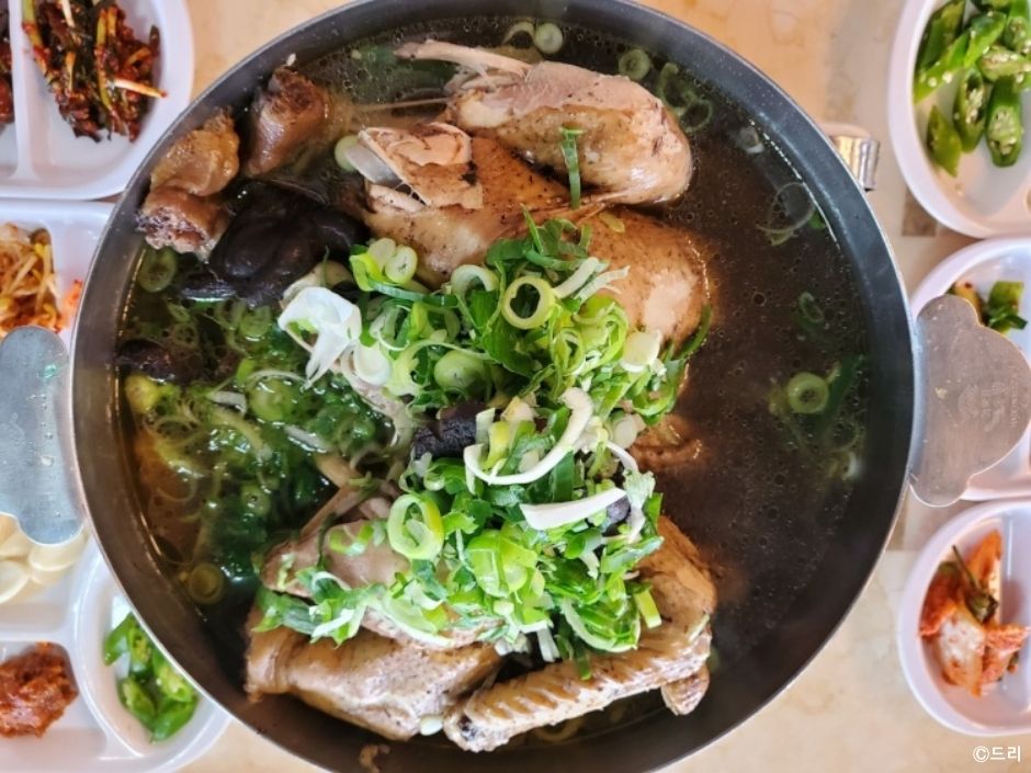 드리는 포천시 삼육사로에 있는 한식 뷔페와 닭요리를 주로 하는 식당이다. 포천 참밸리 CC가 인근에 있어 라운딩 전후에 많이 방문한다. 새벽 6시부터 영업하기 때문에 골퍼들이 특히 많이 찾는다. 단품메뉴도 있지만 주메뉴는 한식 뷔페다. 하루에 국은 2가지가 나오고, 10여 가지가 나오는 반찬은 계절마다 제철 재료로 맛있게 만들어 낸다. 정식에는 돌솥 밥이 나온다. 라운딩 후에 닭볶음탕이나 백숙을 먹기 위해 즐겨 찾는 이가 많은데, 조리하는 데 시간이 걸리기 때문에 사전 예약이 필수다. 주차는 매장 앞에 전용 주차장이 있다. 오후 2시면 영업이 종료되기 때문에, 방문 시 확인이 필요하다.