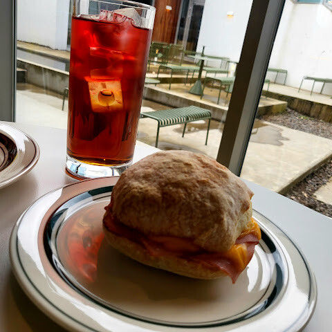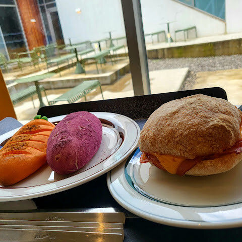 인스타그램 카페. 숲 속 환경에 흥미로운 건축물이 있는 멋진 공간과 전망을 감상해 보세요. 빵(페퍼로니와 할라피뇨 치아바타)은 훌륭했습니다. 윤기가 나고 매우 달콤한 마늘 빵은 이상했지만 흥미로운 경험이었습니다. 태도로 서비스하십시오.