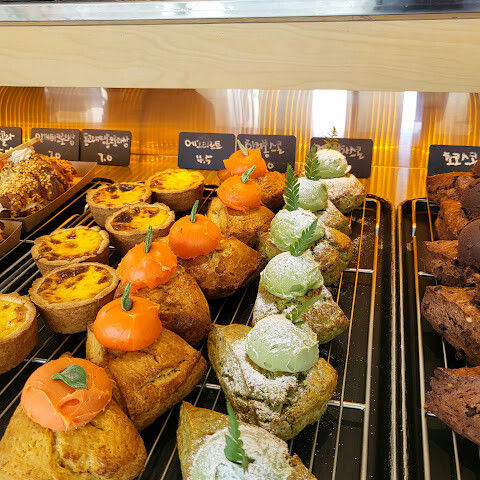 통창으로 보이는 숲 뷰가 너무나 힐링되는 공간이에요. 제주스러운 디저트 베이커리가 보기에도 좋고 맛있어요. 공간이 넓고 쾌적해서 여행 중 쉬어가기도 좋고 일상에서 모임하기도 좋아요. 사람 많아도 번잡한 낌 없구요. 포토존이 많아서 좋아요~
