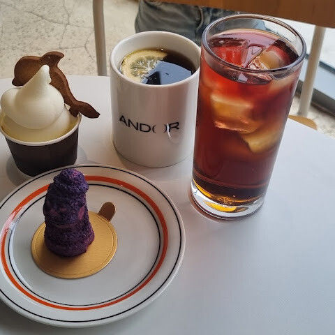 ANDOR에 잠깐 들러 점심을 먹었습니다. 가격이 좀 비싼 편이지만, 분위기만큼은 확실히 돈값을 합니다. 분위기도 좋고, 모든 게 깨끗하고, 건물 전체가 자연에 둘러싸여 있어서 정말 좋습니다.