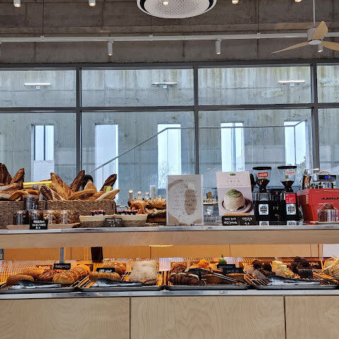빵 세개 시켰는데 다 맛있었습니다 다만 가격대가 좀 있는 편이네용 주변이 초록초록해서 날씨가 좋아도 안좋아도 뷰는 멋질 것 같아용
