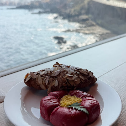 베이커리에서는 제주 스타일의 붉은 동백꽃 페이스트리가 단연 최고였습니다. 아몬드 크루아상은 제가 기대했던 풍부한 버터와 아몬드 향이 부족해서 다음에는 다른 걸 주문할 것 같아요.