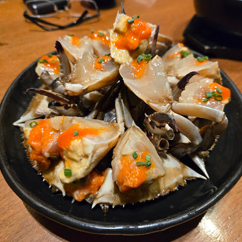 게는 신선했습니다. 강하게 양념되지 않아 게의 생맛을 느낄 수 있습니다. 마음이 약한 사람에게는 적합하지 않습니다. 밥과 양념을 섞어서 먹으면 맛있는 한 끼가 됩니다. 마지막에 알이 가득한 게살에 밥을 넣고 비벼 먹는 것이 가장 맛있고 제가 가장 좋아하는 메뉴였습니다.