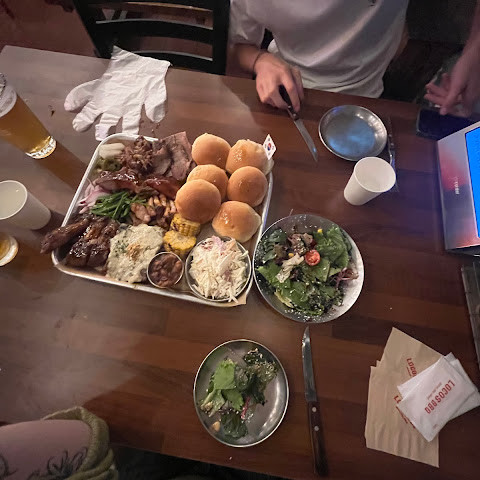 더운날씨 주말 낮에 방문했는데 자리는 비어 있었지만 앞에 한팀이 대기하고 있었고 10분 가량 웨이팅 했어요. 2인 비비큐플래터 먹었고 센터컷비프립, 풀드포크, 백립 너무너무 맛있었어요. 고기들과 함께 곁들일 모닝빵이 너무 맛있어서 놀랐고 브리스킷은 부드럽지만 조금은 뻑뻑한 감이 있어서 살짝 서운했지만 전체적으로 맛있었어요. 다음에 가면 3-4명이서 플래터 말고 다양한 메뉴 주문해보고 싶네요!