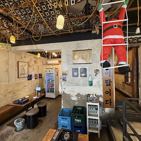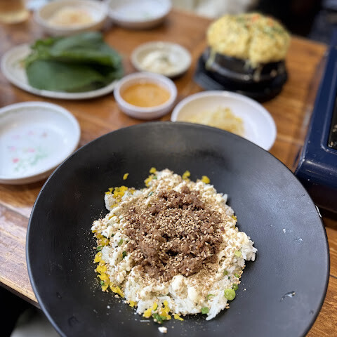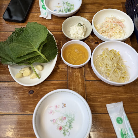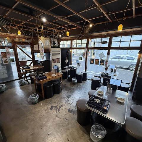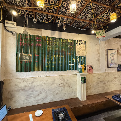 좀 허름한 식당이었어요. 직원들은 괜찮았지만, 저희는 전혀 신경을 안 썼어요. 음식은 아무 말 없이 테이블 위에 쿵쾅거리며 뚝딱 내렸죠. 비빔밥은 최고였고, 구운 계란은 괜찮았는데, 오징어는 신발 밑창처럼 생겼어요! 주방장님이 분젠 버너로 오징어를 굽는 모습을 볼 수 있었어요. 음식은 좀 아쉬웠지만, 아쉽게도 먹을 수는 없었어요.