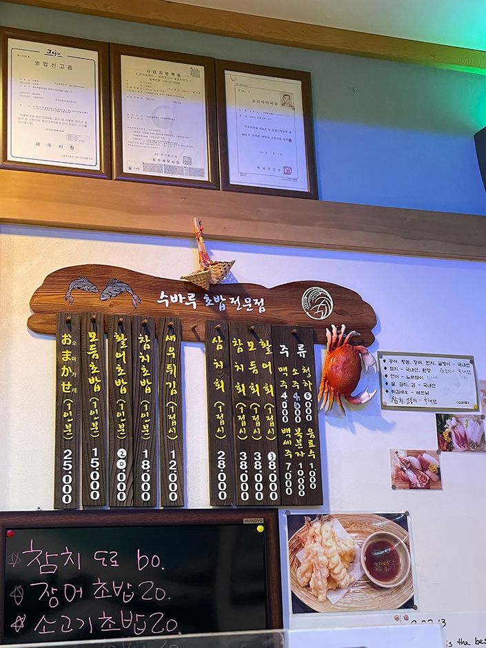 수바루는 제주시 외도동 부영아파트 앞 골목에 있다. 30년 초밥 장인이 제공하는 다양한 회와 초밥, 롤을 맛볼 수 있는 곳으로 가성비 맛집으로 알려져 있다. 소박한 내부에는 바가 있어서 장인이 초밥 잡는 모습을 직접 보며 오마카세를 즐길 수 있다. 참치 뱃살을 포함해 다양한 제철 생선회와 구이도 맛볼 수 있다. 주변 여행지로 내도 알작지 해변, 연대포구, 월대천, 이호테우해수욕장 등이 있다.