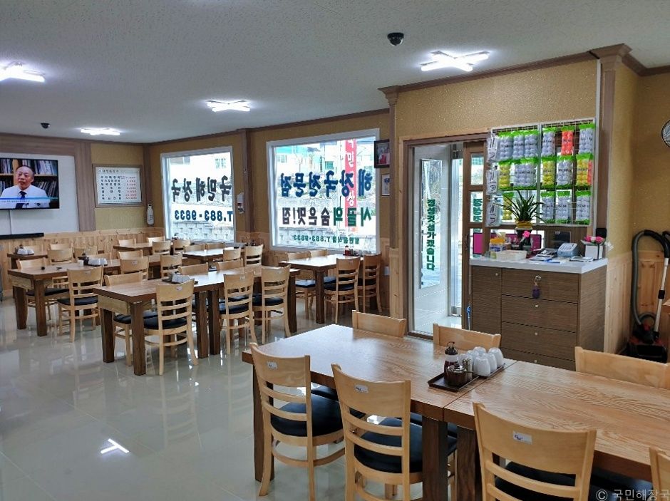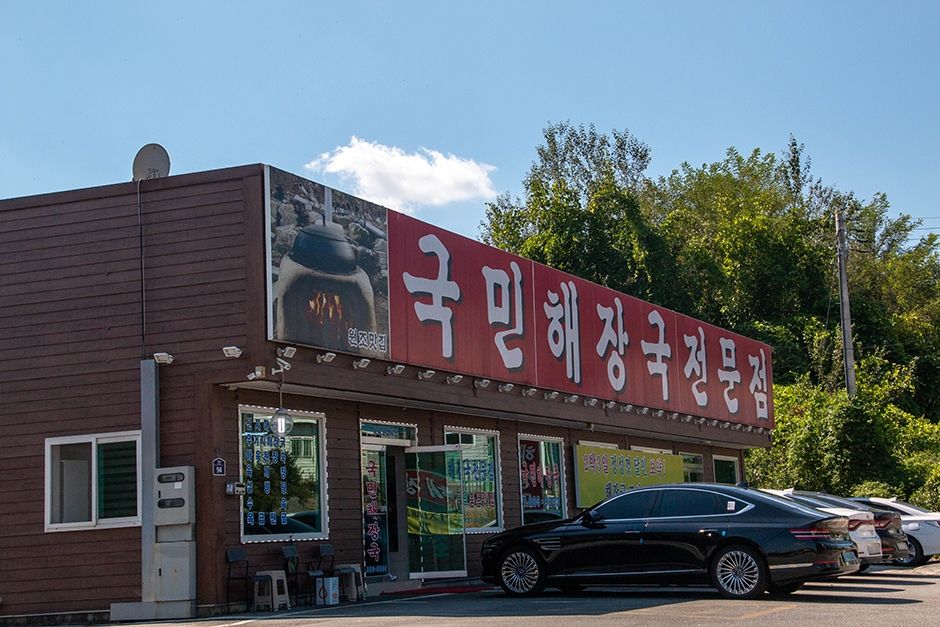 국민해장국은 경기도 여주시 가남읍에 있는 해장국 전문점이다. 매장이 밝고 깔끔하며 메뉴도 간단하다. 근처에 골프장이 많이 있어 아침 식사를 위해 찾는 손님이 많다. 대표 메뉴인 선지해장국은 배추 및 각종 채소와 함께 큼직한 선지와 내장인 양이 듬뿍 들어있다. 진한 국물이 구수하고 시원하다. 더욱 얼큰한 맛을 원할 때는 함께 나오는 양념장을 넣으면 된다. 아욱된장국도 많이 찾는데 아욱이 부드럽고 넉넉하게 들어 있다. 된장국물이 짜지 않고 간이 적당하여 구수하고 감칠맛이 나서 아침 식사 때 좋다. 육개장은 고사리, 파, 무가 많이 들어가서 얼큰하면서도 시원하고 부드러운 소고기도 듬뿍 들어있다. 매운맛을 잡기 위해 들어간 계란도 궁합이 잘 맞는다. 후식으로 믹스커피, 원두커피를 모두 준비해 놓았다. 카운터 옆에 골프공과 장갑도 판매하고 있다. 7km 이내에 다수의 골프장이 있다.