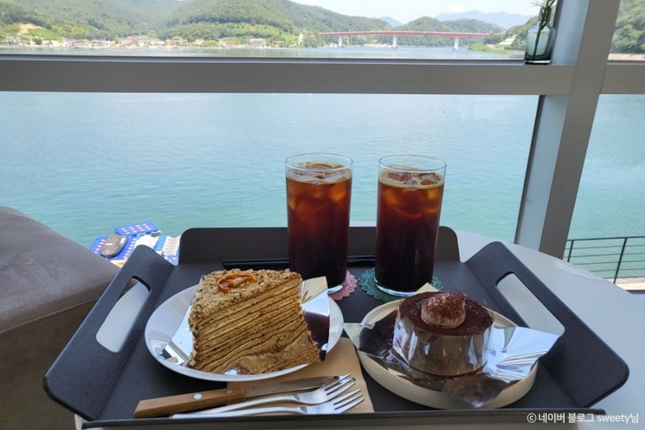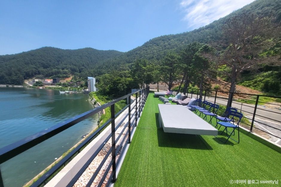 고성군 동해면 외산리에 있는 안 카페는 잔잔한 호수 같은 바닷가에 자리 잡고 있어 붉은 동진교와 푸른 하늘, 흰 구름의 조화가 잘 이루어진 경치를 감상할 수 있다. 스페셜 메뉴는 금산 생인삼 주스와 수제로 만든 전통 식혜, 오곡 미숫가루가 있고 일반적인 카페와는 달리 샴페인과 와인을 판매하고 있다. 디저트 종류보다는 케이크 종류가 더 많이 마련되어 있다. 건물이 좌우로 길게 뻗어있고 모든 자리에서 바다를 볼 수 있도록 소파를 배치해 놓았다. 실내뿐만 아니라 야외에도 많은 좌석이 마련되어 있다. 주말은 매장 이용 시간이 2시간으로 제한된다.