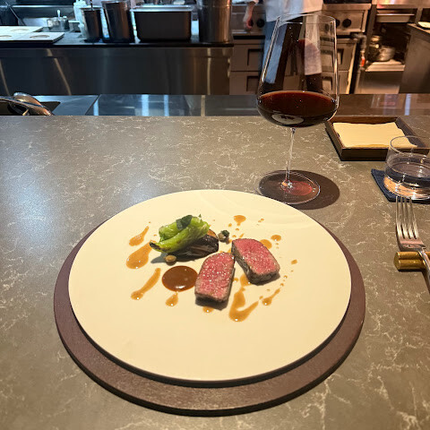 고급스러운 식재료와 와인 셀렉션이 훌륭했습니다. 특히 보르도 화이트 와인은 탁월했습니다. 바의 긴 테이블에 앉으면 분주하지만 정돈된 주방의 모습을 한눈에 볼 수 있습니다. 향긋한 향과 분위기는 대담하고 자신감 넘치는 느낌을 줍니다. (고급 음향 시스템, 영화 같은 배경 음악, 금속, 어두운 색상의 거친 질감의 돌, 짙은 갈색 나무 등 묵직한 소재들, 외향적인 서비스 스타일 등) 미니멀리즘을 추구하거나 내성적인 사람들에게는 다소 부담스러울 수 있습니다.