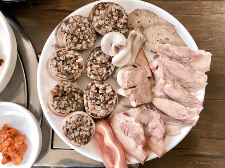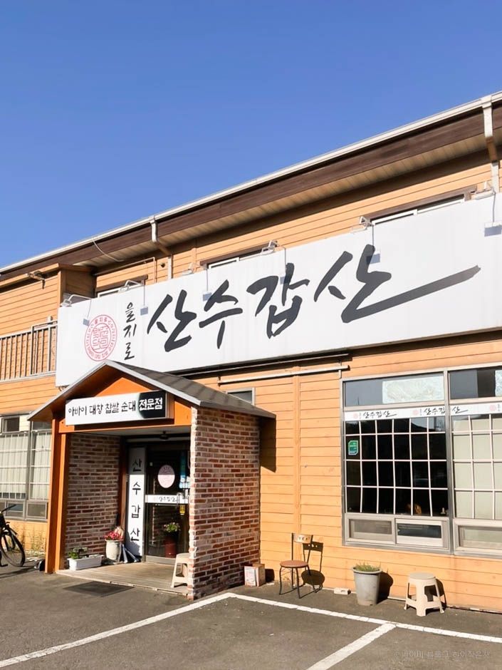 을지로에서 순대로 유명한 산수갑산이 일산에 오픈한 산수갑산 일산 직영점은 중산동 근처 약산 마을에 있다. 실내는 넓고 깔끔하다. 기본 반찬은 김치, 섞박지, 마늘, 마늘쫑 무침, 고추, 야채가 나온다. 순댓국은 넓고 큰 뚝배기에 양념 다대기를 처음부터 올려서 나온다. 내장이 다양하게 많이 들어있고 깔끔한 맛의 순대국밥이다. 순대 정식은 순대국밥에 순대 모둠이 같이 나온다. 간, 귀, 허파, 돈설 등 각종 내장이 정갈하게 담겨 나온다. 산수갑산 을지로점은 대기 줄도 길고 복잡하지만, 산수갑산 일산점은 넓고 쾌적해서 좋다. 더 필요한 야채는 셀프바를 이용하면 된다.