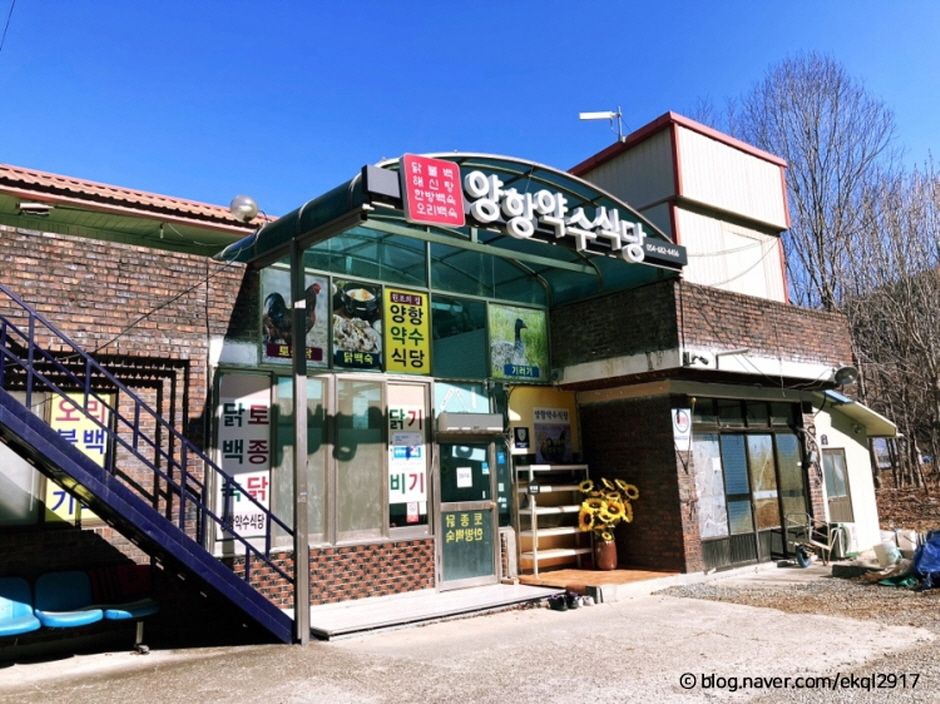 양항약수식당은 경상북도 영양군 입암면 양항리에 있다. 오랜 세월의 흔적이 엿보이는 외관과 예스러운 분위기를 연출하는 인테리어가 눈에 띈다. 내부에는 단체석이 마련되어 있어 각종 모임을 하기 좋다. 대표 메뉴는 닭 불백이다. 이 밖에 토종 한방백숙, 한방오리 백숙, 오리 불고기, 해신탕 등을 맛볼 수 있다. 동청송·영양IC에서 가깝고, 주변에 선바위관광지와 영양산촌생활박물관이 있다.