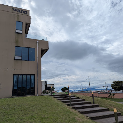 순천의 와온 해변 근처 언덕에 있는 아담한 카페이다. 넓은 창과 흰색 페인트가 칠해져 있고 저녁이면 3층 건물 전체를 밝게 비추는 노란 조명과 카페로 이어지는 계단이 와온 해변과 잘 어우러진 풍경을 자아낸다. 카페 건물과 한옥 펜션이 이어져 있는 곳으로 카페 이용 시 한옥 펜션 마당도 함께 구경할 수 있다. 메뉴는 커피류와 라테류, 복숭아 아이스티, 피치 블로섬 등 논 커피류 등도 다양하게 준비되어 있다. 시그니처 메뉴로는 오렌지와 파인애플 히비스커스로 만들어 와온의 노을을 표현한 와온 선셋, 콜드브루 베이스로 만든 와온_밤 아인슈페너, 크루저와 연유를 섞어 만든 돌체_밤 아인슈페너 등이 있다. 간단한 베이커리도 있어 음료와 곁들어 먹기 좋다. 3층은 어린이 제한 구역으로 운영되고 있다.