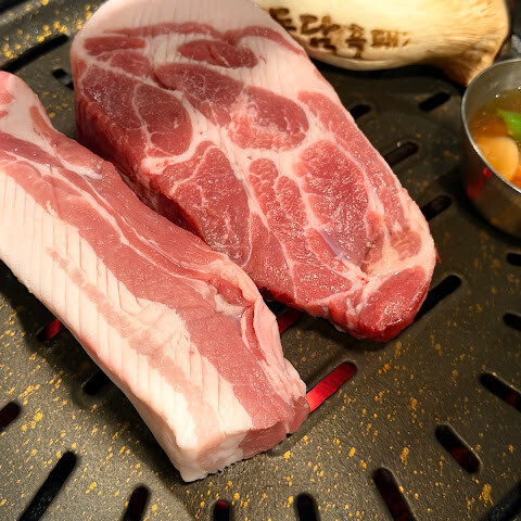 전에 여기서 먹은 적이 있어요. 서비스도 좋고 분위기도 좋고 고기도 두껍고 맛있었어요. 가격 대비 정말 만족스러웠어요. 돼지 목살을 주문했어요.