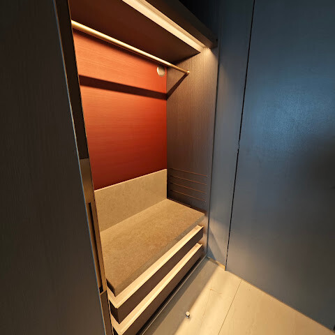 가장 마음에 드는 점은 두 사람이 사용하기에 충분한 초대형 킹사이즈 침대입니다. 침구도 매우 편안합니다. 밤에는 침대 발치에 설치된 동작 감지 센서 덕분에 침대에서 일어나자마자 조명이 켜져 안심하고 모든 불을 끌 수 있습니다. 욕실로 가는 바닥에도 동작 감지 센서 조명이 설치되어 있어 파트너를 깨우지 않고도 충분한 조명을 제공합니다. 정말 멋진 디자인입니다!