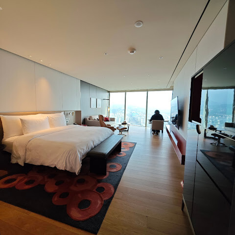 전반적으로 별 5개 만점입니다. 규모가 엄청난 하얏트 호텔인데, 객실은 매우 깨끗하고 넓었습니다. 그랜드 클럽도 훌륭했고요. 직원들의 친절함과 효율적인 서비스에 만족합니다. 위치도 아주 좋아서 주변에 레스토랑과 편의점이 많습니다. 롯데마트도 가까워서 온갖 간식거리를 살 수 있어요. 다음에 또 방문할 의향이 있습니다.