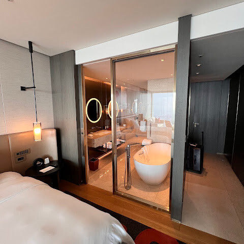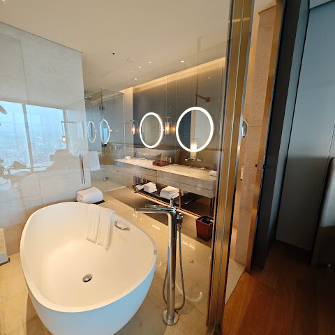 그랜드 킹 스위트는 단연 돋보였습니다. 약 1,400제곱피트(약 130제곱미터)에 달하는 아름답게 디자인된 공간에 완벽하게 엄선된 가구들이 배치되어 있었습니다. 객실 청소 서비스 또한 신속하고 효율적이어서 인상적이었습니다. 하얏트 글로벌리스트 회원에게 이 호텔은 최고의 선택입니다. 그랜드 라운지에서는 하루 종일 와인 서비스를 제공하며, 고급스러운 조식과 저녁 식사를 즐길 수 있습니다. 또한, 잘 갖춰진 피트니스 클럽과 무료 운동복 및 운동화 제공은 세심한 배려가 돋보였습니다.