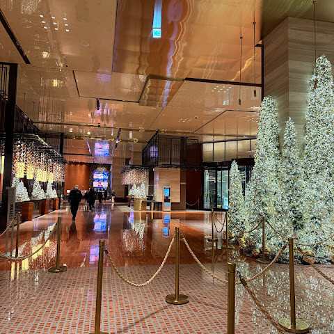 이번 제주 여행에서 가장 만족스러웠던 숙소 중 하나입니다. 크리스마스가 지난 후에도 호텔 내부와 주변 곳곳에 아름다운 크리스마스 장식이 남아 있었습니다. 객실은 넓고 편안했으며, 고급스러운 분위기를 자아내는 다양한 편의시설과 소품들이 갖춰져 있었습니다. 멋진 도시 전망과 쇼핑 및 식당가와의 접근성 또한 훌륭했습니다. 아쉽게도 드림타워 몰의 카지노, 쇼핑, 식사 시설은 시간이 부족해서 둘러보지 못했습니다.