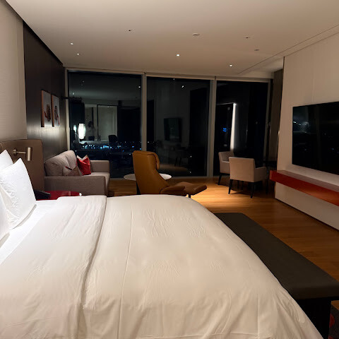 전반적으로 별 5개 만점입니다. 규모가 엄청난 하얏트 호텔인데, 객실은 매우 깨끗하고 넓었습니다. 그랜드 클럽도 훌륭했고요. 직원들의 친절함과 효율적인 서비스에 만족합니다. 위치도 아주 좋아서 주변에 레스토랑과 편의점이 많습니다. 롯데마트도 가까워서 온갖 간식거리를 살 수 있어요. 다음에 또 방문할 의향이 있습니다.
