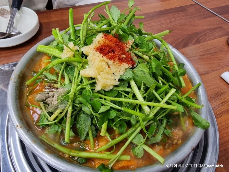시원한 맛이 좀 빠진듯한 칼칼한 매운탕.