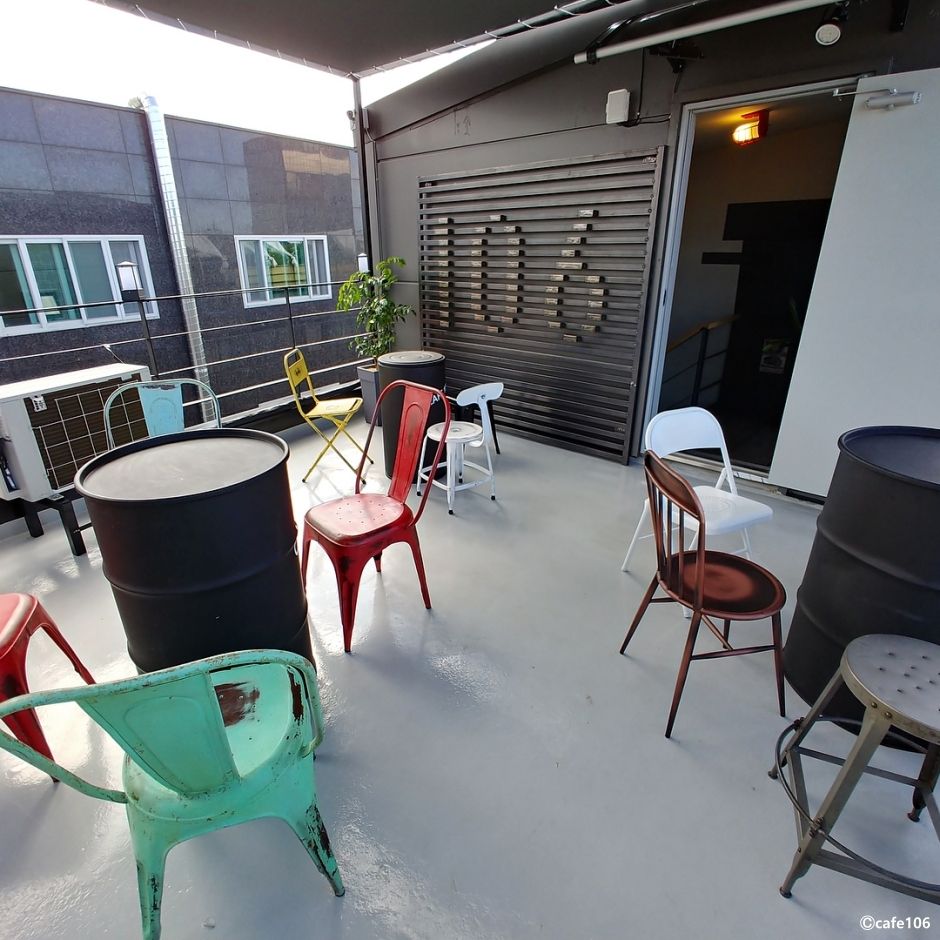 cafe106은 강원도 강릉시 성남동, 강릉 중앙시장 근처에 있는 카페이다. 서리태 커피와 태성커피가 시그니처 메뉴인데 서리태 커피는 고소한 서리태 크림과 에스프레소의 조화가 돋보이고, 태성커피는 달달한 커피와 고메 버터의 풍미를 느낄 수 있다. 카페는 1층부터 3층까지 운영하는데 1층은 주문을 받는 카운터와 화장실과 같은 편의시설이 있고 커피를 마실 수 있는 좌석은 2층과 3층에 있다. 아기자기한 소품으로 예쁘게 꾸며 놓아 사진을 남기기에도 좋다. 시장 근처라 주차장을 갖추고 있지 않아 중앙시장 공영주차장에 차를 대고 이동하는 게 편리하다.