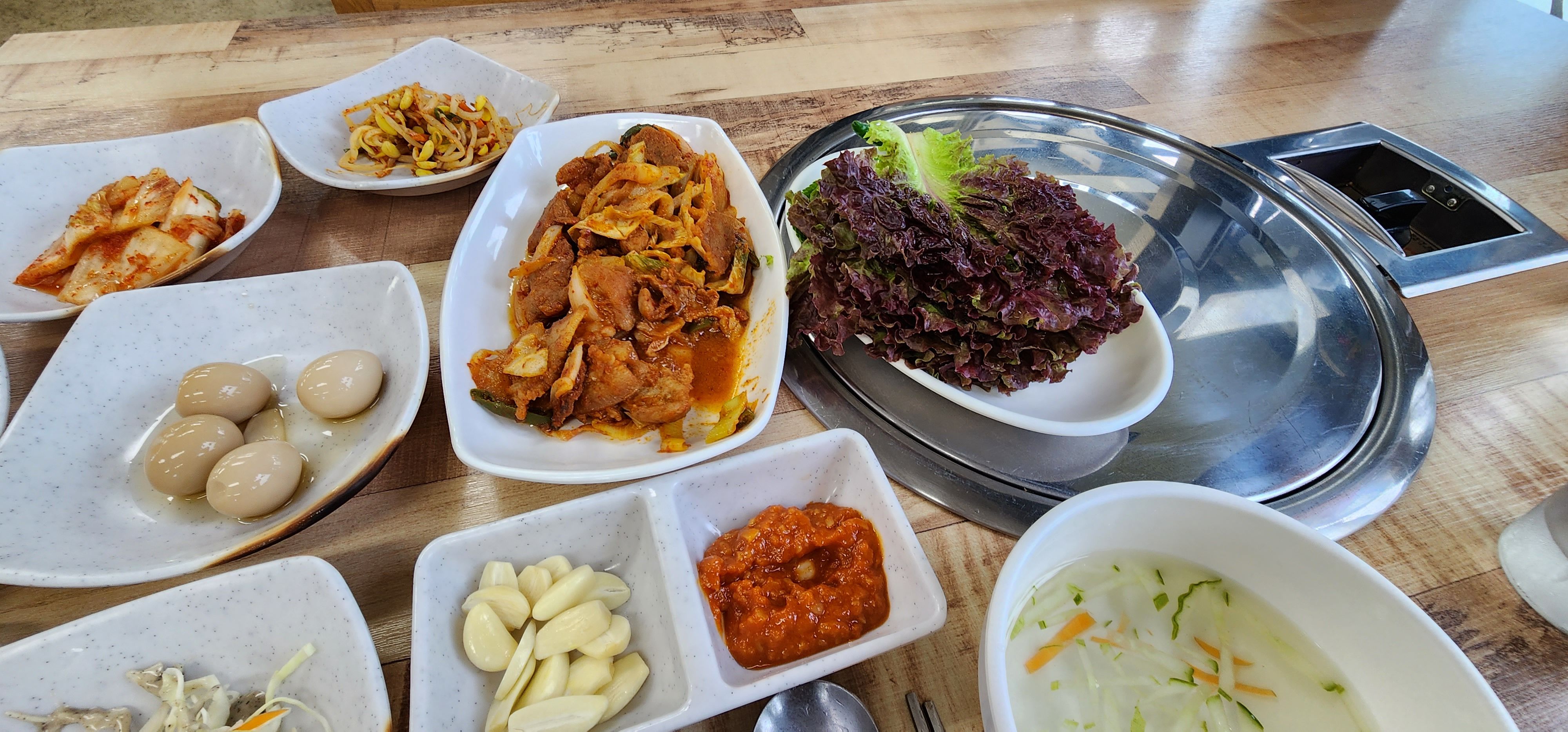 | 대표 메뉴 | 생고기철판제육 | | 기타 메뉴 | 묵은지닭도리탕, 묵은지생고기김치찌개, 삼겹살, 토종닭한방백숙, 한방오리백숙, 청국장, 된장찌개, 갈비탕 | | 주차 시설 | 있음 | | 영업시간 | 10:00 ~ 21:00 | | 쉬는날 | 연중무휴 |