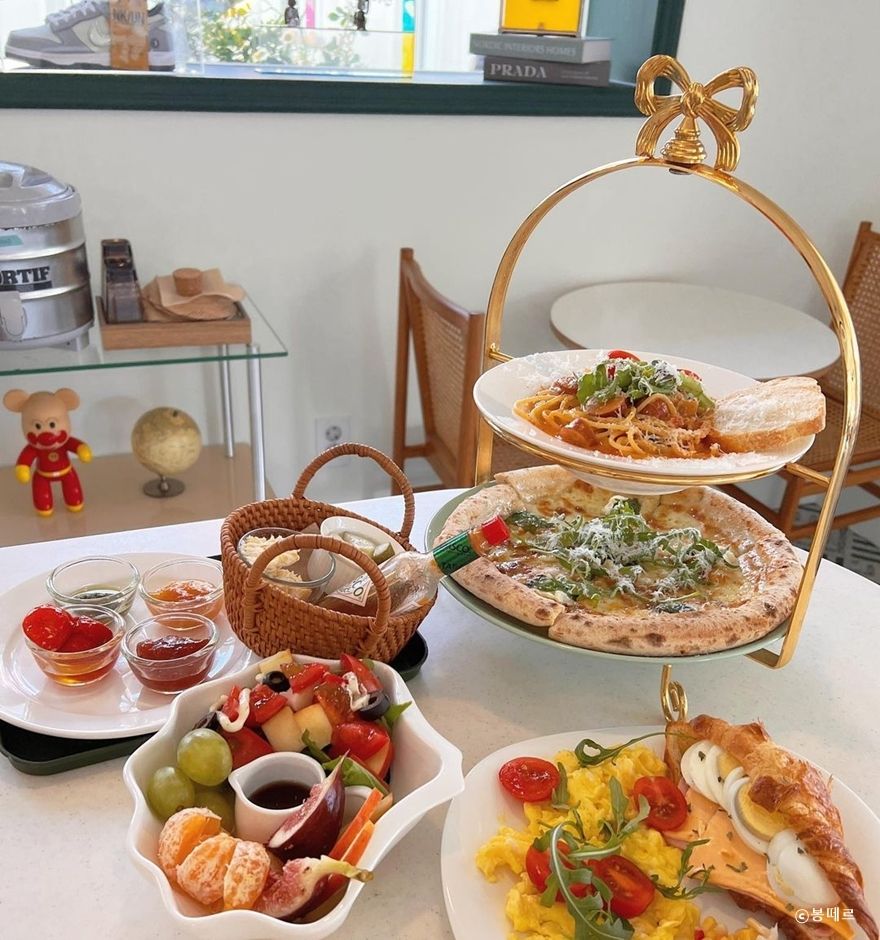 부천시 삼작로에 있는 유럽풍 카페로 노란 외벽에 에메랄드 색깔의 문이 눈길을 끈다. 아기자기한 빈티지 느낌의 소품으로 실내를 꾸며 놓아 볼거리가 있다. 곳곳에 유럽풍의 장식들도 포토존의 역할을 한다. 유리 통창으로 된 실내 테라스는 천정이 유리로 되어 있어 채광이 좋고, 시폰 커튼이 하늘하늘하게 천정에 드리워져 있어 유럽 감성을 느낄 수 있다. 테이블과 의자는 라탄으로 되어 이국적인 느낌이 든다. 진열대 위에는 예쁜 접시에 담긴 쿠키와 디저트가 있고 한쪽에는 굿즈 등을 판매한다. 이곳에는 다양한 브런치 종류를 한 번에 맛볼 수 있는 바구니 브런치 세트 메뉴가 있다. 라탄 바구니에 여러 가지 음식이 한꺼번에 나오는 이색적인 브런치 메뉴다. TV 방송 생방송 투데이에 바구니 브런치와 애프터눈 티, 3단 트레이가 소개된 바 있다.