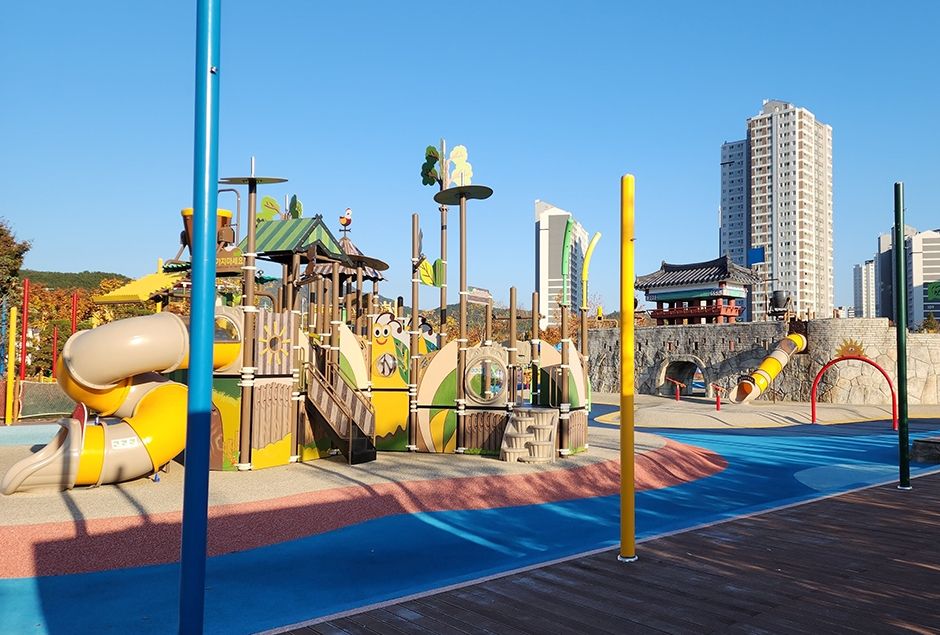 진주 혁신도시에 있는 물초울공원은 넓은 규모의 공원으로 산책로와 물놀이를 할 수 있는 물놀이장, 놀이터로 이루어져 있다. 공원 주변으로 영천강과 갈전천이 흐르고, 공원 안에는 저류지가 있어 운치가 있다. 여름에 특히 인기가 많은 물놀이장에는 그늘막과 나룻배, 진주성 모형의 미끄럼틀이 있어 사계절 내내 이용할 수 있다. 물놀이장은 7월부터 8월까지 진주 통합예약 시스템에서 사전 예약 후 이용할 수 있다. 물초울 공원에 오면 모래놀이, 흔들 놀이, 스카이 시소, 포크레인 모래놀이, 바구니 그네, 엄마와 함께 타는 그네, 짚라인 등 다양한 놀이가 있는 어린이 놀이터가 있어 아이와 함께 방문하면 좋다. 공원 내 도보를 위해 고무칩 포장을 하여 자전거와 킥보드는 출입 불가이다. 물초울공원 근처 차로 15분 거리에 진주성도 있어 함께 둘러보는 것도 좋다.