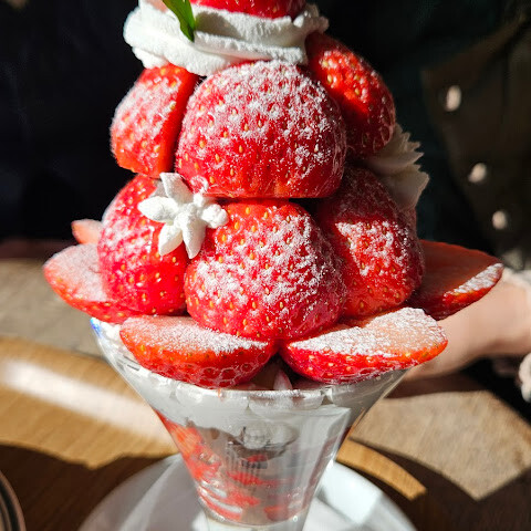 두 시간이나 기다릴 가치가 전혀 없어요. 딸기 맛은 누가 재배했는지는 모르겠지만 그냥 평범했어요. 과대평가된 곳이고 관광객을 대상으로 한 바가지입니다. 조심하세요.