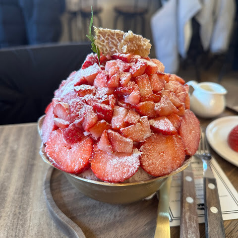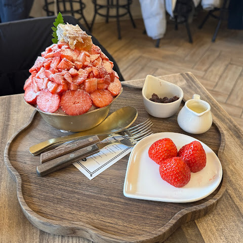 엄청 붐볐지만 기다릴 만한 가치가 있었어요. 캐치테이블로 원격 대기를 했는데 3시간 넘게 기다렸습니다. 빙수와 딸기 케이크는 정말 최고였어요! 기회가 된다면 꼭 가보세요. 하지만 시간을 잘 맞춰서 일찍 줄을 서세요!