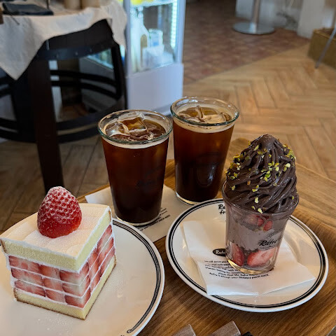 소셜 미디어에서 이 카페를 많이 봤어요. 오픈 15분 전부터 줄을 섰는데, 이미 앞에 짧은 줄이 있었어요. 케이크와 빙수는 저렴하지는 않지만, 과일이 듬뿍 들어있어서 괜찮았어요. 첫 방문으로는 괜찮았지만, 아마 다시 갈 것 같지는 않네요.