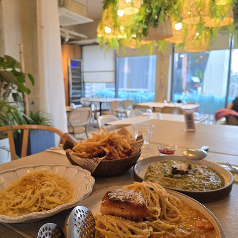 점심은 여기서 먹기로 했는데, 파스타와 샐러드가 정말 훌륭했어요! 직원들도 정말 친절했어요.
