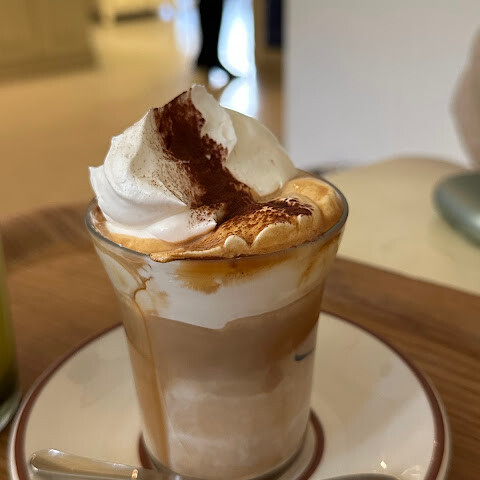 말차 라떼, 아인슈파너, 그리고 디저트로 갓 짜낸 크림 스콘을 주문했어요. 음료는 부드럽고 정말 맛있었는데, 특히 아인슈파너는 위에 듬뿍 얹은 생크림이 일품이었고, 스콘도 갓 구워져 부드러운 크림이 가득했어요. 가게 분위기도 따뜻하고 아늑해서 편안하게 쉬기 좋은 곳이었어요.