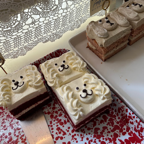 케이크 종류도 다양한데, 그중에서도 가장 귀여운 건 강아지 케이크예요. 강아지 케이크는 표정이 정말 귀엽고 촉촉해요.