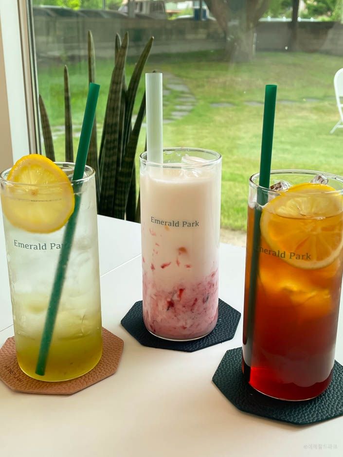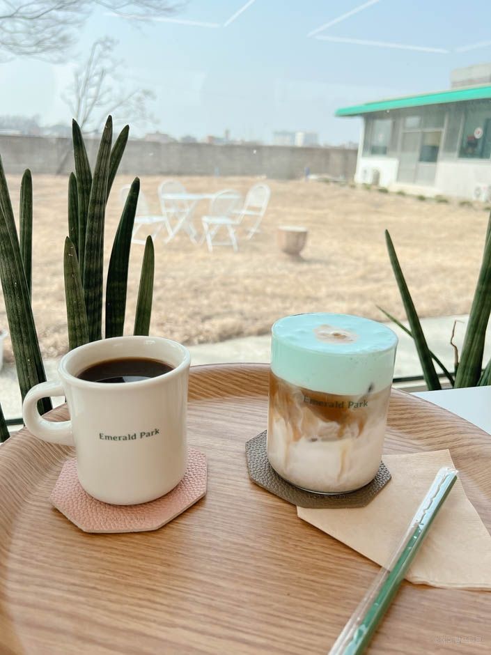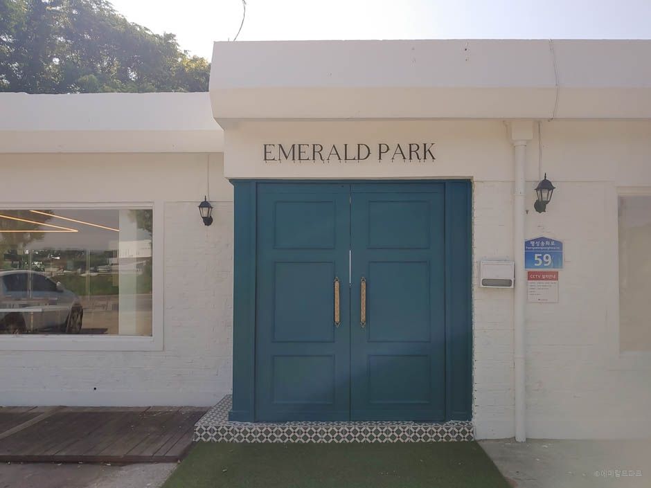 에메랄드 파크는 경기도 평택시 송화리에 있는 크로플 맛집 카페다. 주차장은 매장 앞에 넓게 있어 편리하게 이용할 수 있다. 하얀 벽에 그린색의 문이 눈에 띄는 에메랄드파크는 차가 많이 다니지 않는 길가에 있어서 한적한 편이다. 내부에 들어서면 독특한 타일 바닥에 흰색 테이블과 원목의자가 깔끔하게 놓여있고 입구 쪽엔 노란 등이 달려있어 좀 더 차분한 느낌을 준다. 뒤편 잔디마당에는 야외 테이블이 있어 아이들이나 반려견과 함께 머물기 좋다. 커피 메뉴가 다양하게 있고 티, 에이드, non coffee 도 있다. 디저트는 머핀과 케이크, 크로플 등이 있다.
