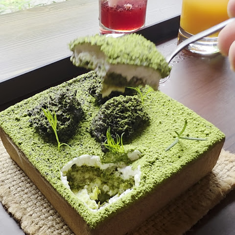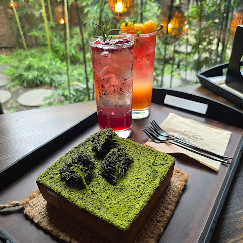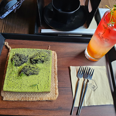 음료는 괜찮았어요. 하지만 개인적으로 말차 케이크는 그다지 마음에 들지 않았어요. 정말 아름다운 프레젠테이션과 모든 면에서 세심한 배려가 돋보였어요.