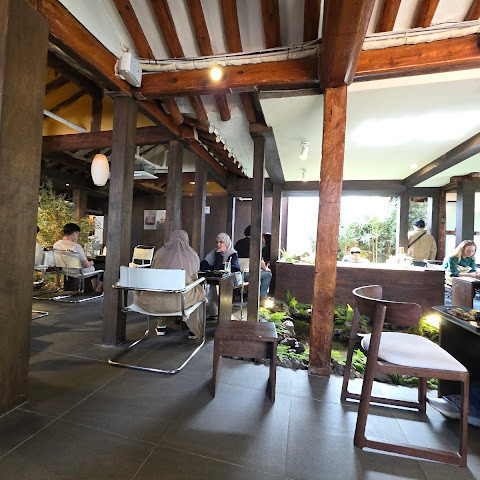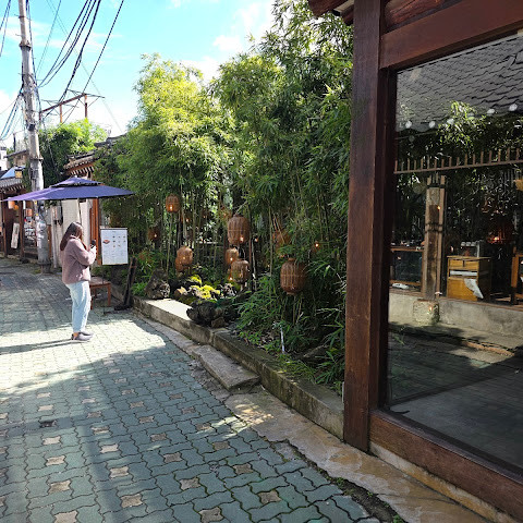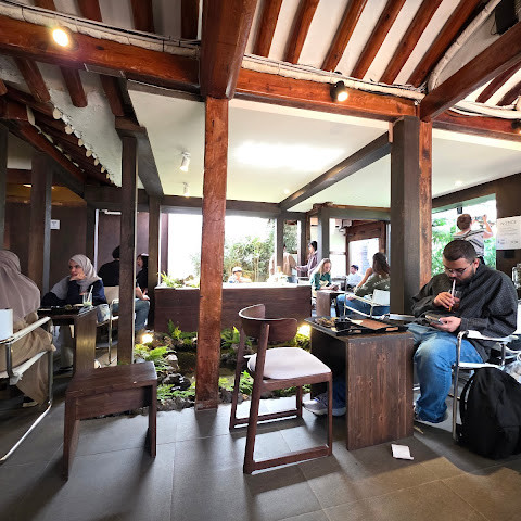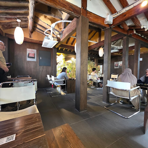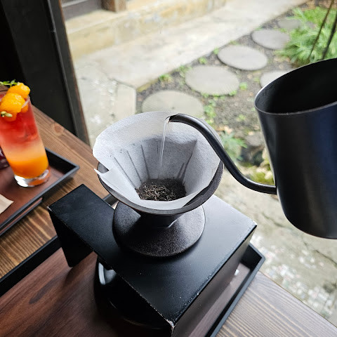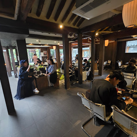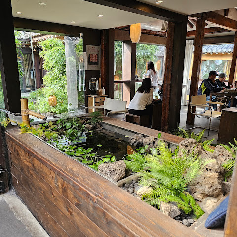 전통 양식의 건물에 자리 잡은 꽤 예쁜 카페로, 좌석이 많고 조경도 아름답습니다.