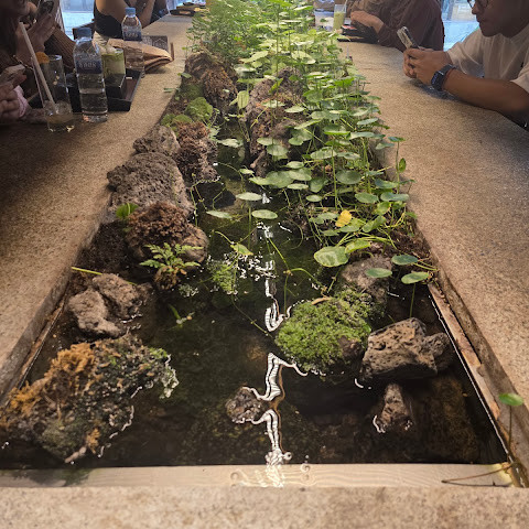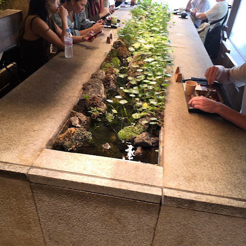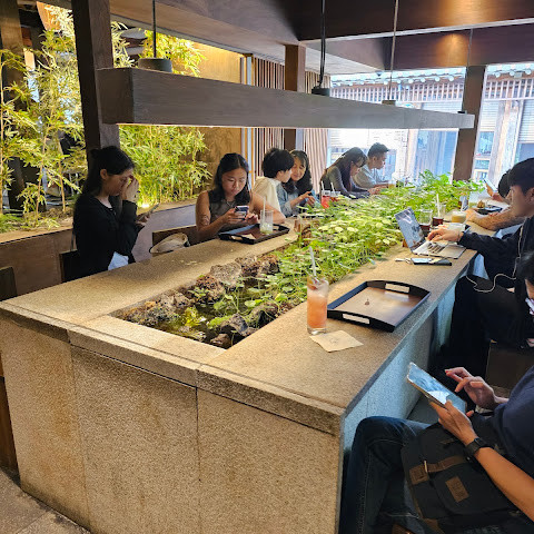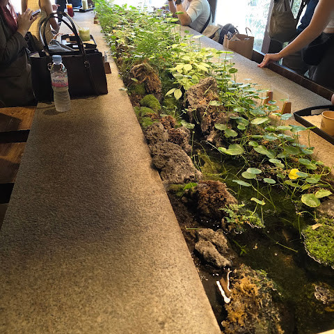 자연 속에서 가장 아름다운 카페예요. 물고기도 볼 수 있고요. 가볼 만한 가치가 있어요. 말차도 맛있어요.