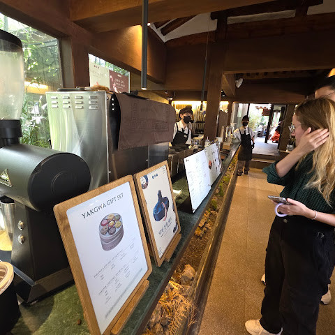 이 인기 카페는 문 열기 전부터 손님들이 줄을 서 있습니다. 저희는 오전 10시 30분에 가게 문이 열리자마자 들어갔는데, 좌석도 넉넉하고 가게 내부는 아주 조용하고 편안했습니다. 저희는 말차 프로마주 케이크와 오리지널 드립 커피 한 잔을 주문했습니다. 케이크는 평범하고 드라이한 편이었지만, 말차 맛은 강했습니다. 커피는 묽은 편이었습니다.