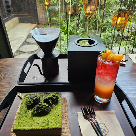 음료는 특히 말차를 추천합니다. 완벽한 계량, 맛, 그리고 섬세한 플레이팅이 일품입니다. 잠시 휴식을 취하며 그 순간을 만끽하기에 더할 나위 없이 좋은 곳입니다.