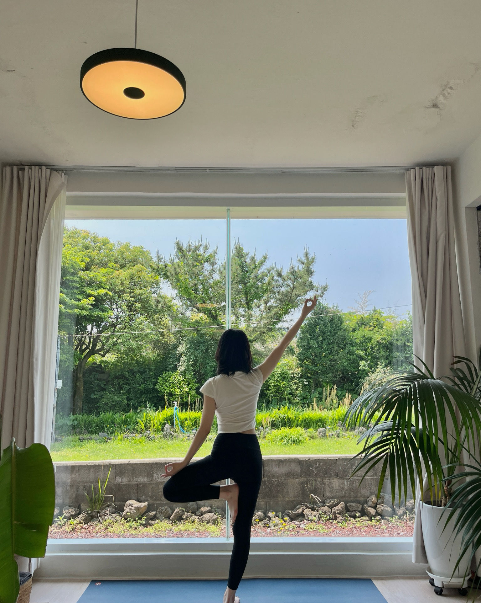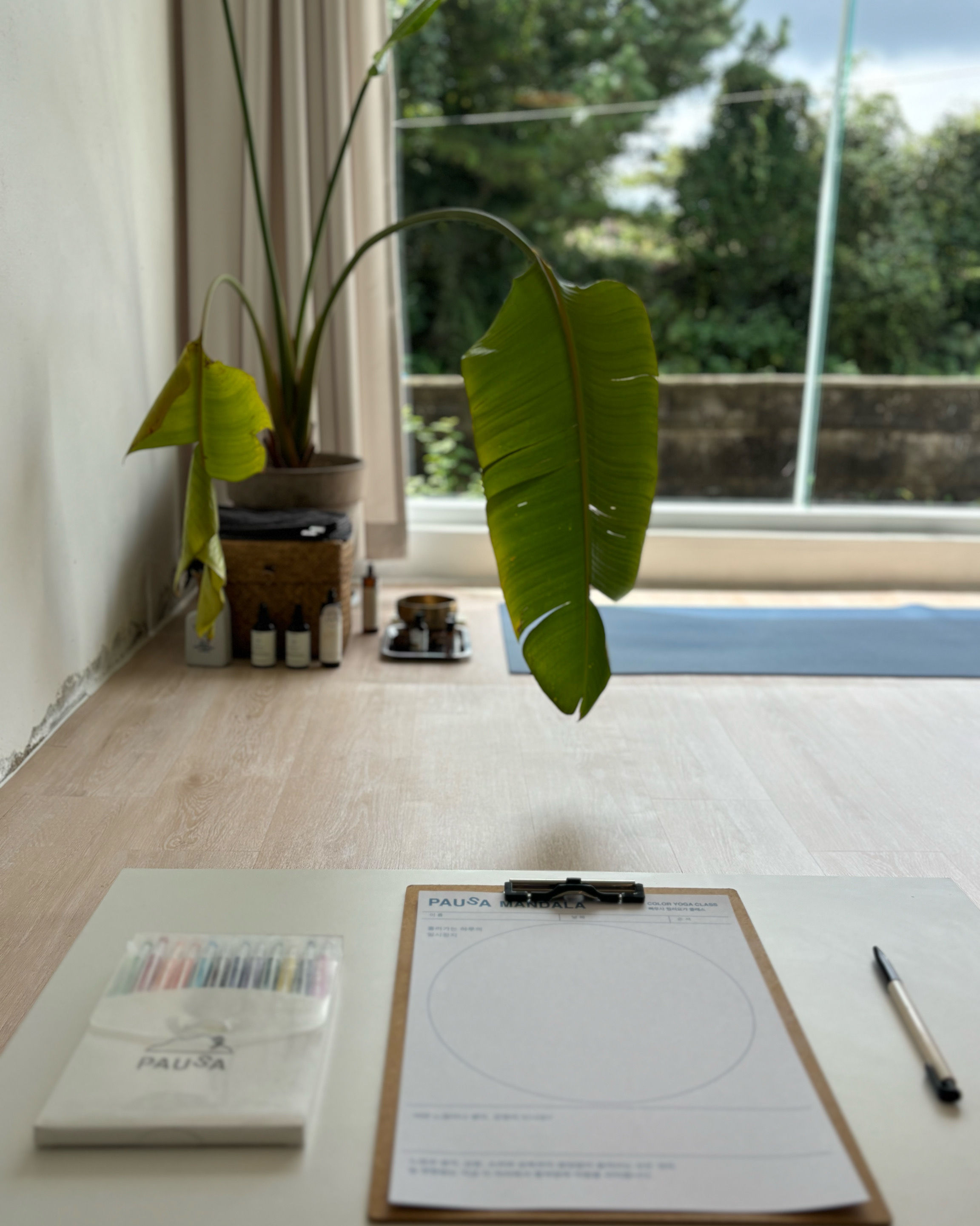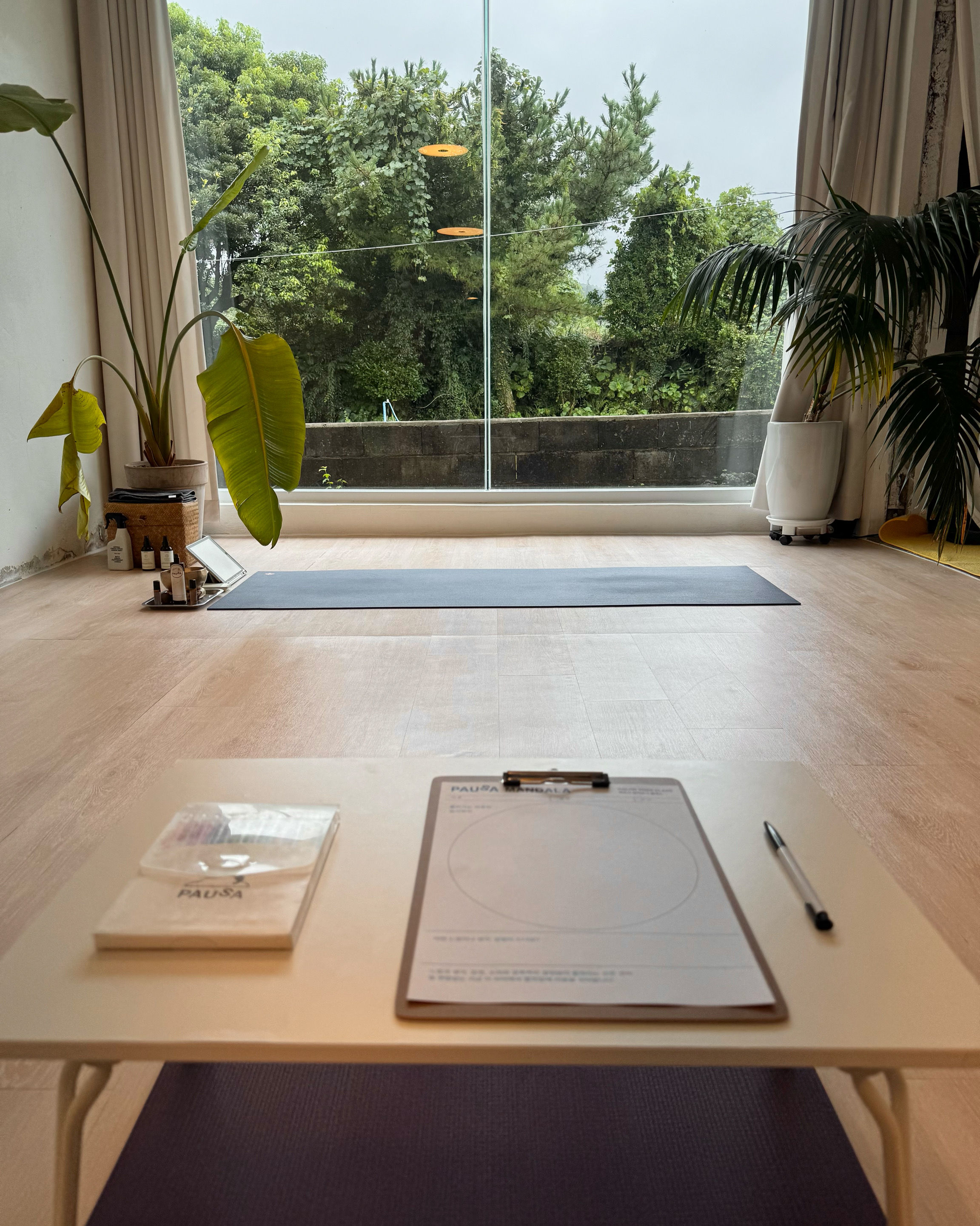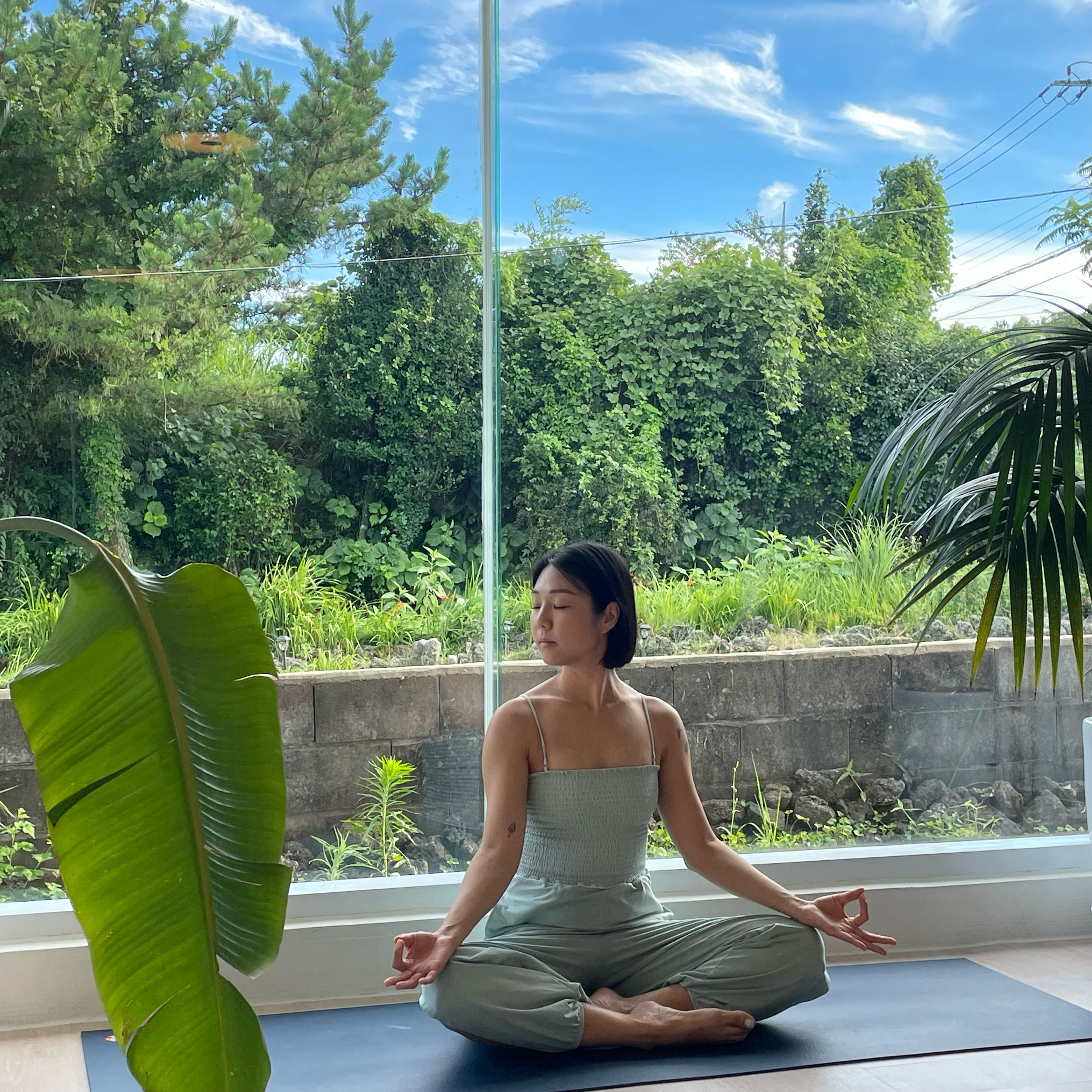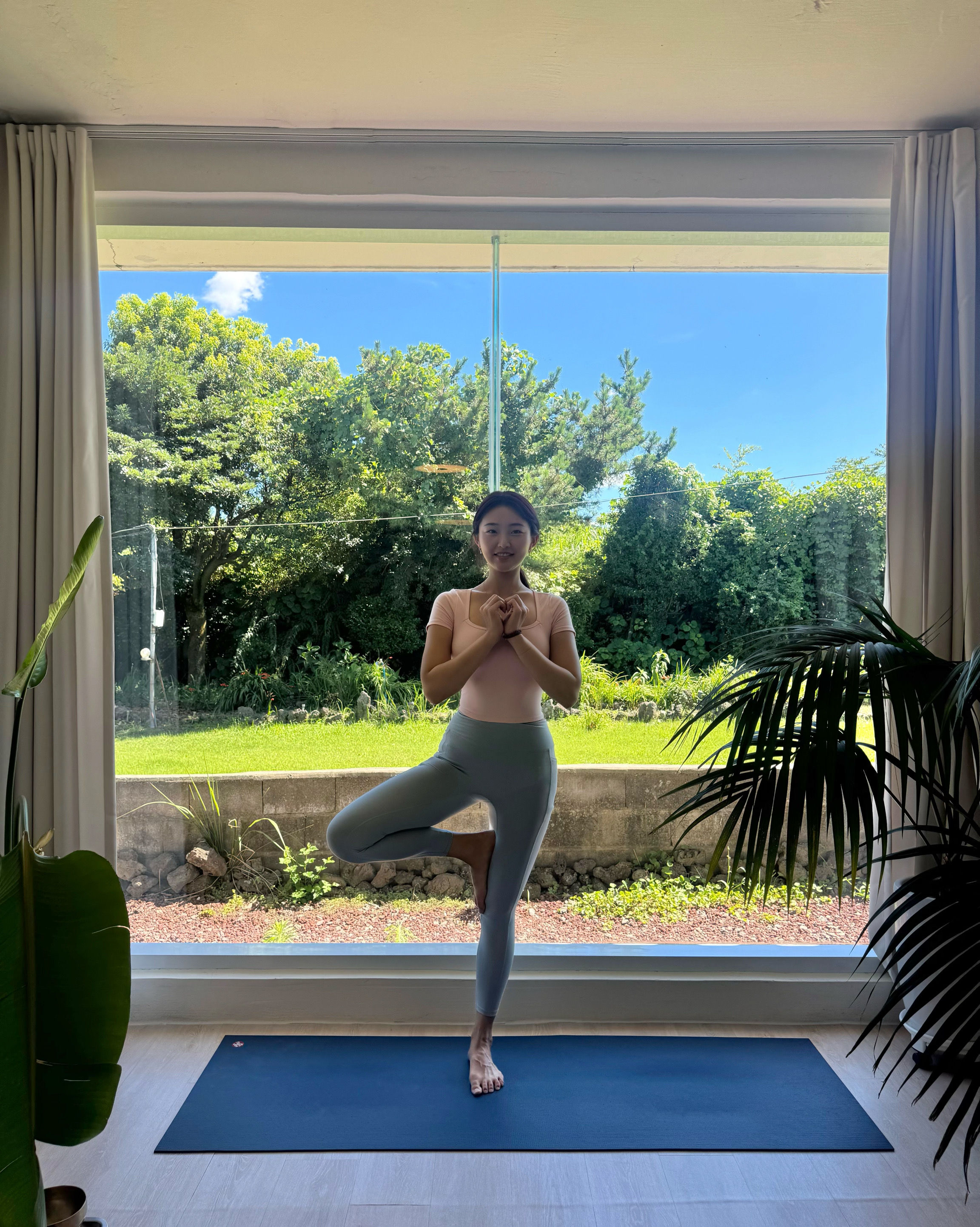통창으로 보이는 풀잎들도 좋았고 아침 요가로 개운하게 하루를 시작할 수 있어서 좋았어요😊🩷
