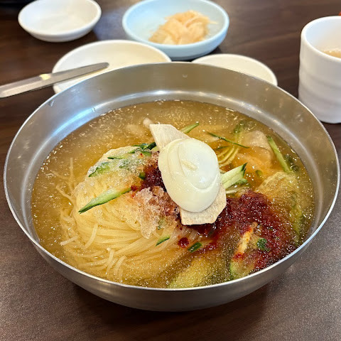 가벼운 저녁 밥을 찾고 있고, 폐점 직전에 냉면과 만두를 받았습니다. 맛있었습니다! 차가운 국수는 가득 차도 좋았을지도. 냉면은 너무 빨리 나와서 놀랐지만.