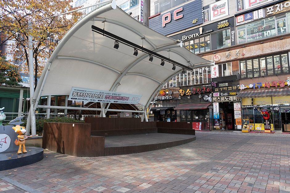 경기도 화성시 동탄 반석산 근린공원 근처에 있는 광장이다. 규모는 크지 않지만 광장 둘레로 맛집과 카페, 편의시설, 유흥시설이 밀집해 있는 곳이다. 소규모 공연이나 모임을 할 수 있는 야외무대가 있고 자전거 보관소가 있다. 야외무대는 시민 누구나 자유롭게 이용할 수 있는 시설이다. 반석산 근린공원 주변으로도 노작공원이 있고 분위기 좋은 맛집과 카페가 많아 주변 교통은 혼잡한 편이다. 광장 바로 앞에 무인으로 운영되는 한빛주차장이 있다. 한빛주차장은 공영주차장으로 1시간 30분 무료주차가 가능하다.